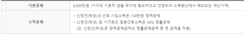 국가에서 인정하는 소득구간에 들어간 대학생 가구에게