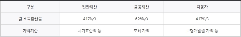 다음은 월 소득환산율, 가액 기준입니다.